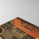Ein gedehnter Druck, der die Energie der Art-Déco-Bewegung kanalisiert, indem er kontrastierende Farben und dynamische Muster nutzt, um eine visuell beeindruckende Kulisse zu schaffen, die dem Glamour und der Aufregung der rauschenden Zwanziger Ehre macht.
