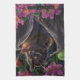 Flying Fox mit einigen seiner Lieblingsspeisen, Feigen und Kapok Baum Blume. Fauna Fokus Tier für Mai 2019. Livingstone Flying Foxes sind auf der roten Liste der IUCN kritisch gefährdet. Wunderschönes Ornament für Wildtiere und Naturliebhaber, Bewusstsein für diese bezaubernde Art!