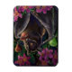 Flying Fox mit einigen seiner Lieblingsspeisen, Feigen und Kapok Baum Blume. Fauna Fokus Tier für Mai 2019. Livingstone Flying Foxes sind auf der roten Liste der IUCN kritisch gefährdet.