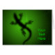 Die Silhouette einer Eidechse durch ein leuchtend grünes Blatt.