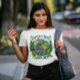 Dieser einzigartige T - Shirt ist ein stehender Bewacher von Fantasiewesen über einem üppigen Wald und symbolisiert den Schutz von Bäumen am Erdetag. Ziel des Entwurfs ist es, das Bewusstsein für die Bedeutung der Erhaltung unserer Wälder zu schärfen und die Nachhaltigkeit zu fördern. Eine Eidechse, die mit einem Gewehr auf einem T - Shirt geschmückt ist und ein einzigartiges und mutiges Design zeigt, das für Reptil- und Feuerwaffenfans gleichermaßen geeignet ist.