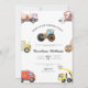 Diese Baby Under Construction-Babydusche mit einem zentralen Bauskipper, umgeben von kleineren LKWs und bauspezifischen Elementen wie Konen und Hut. Es ist ein spielerisches und lebendiges Design, die Ankunft des Kleinen zu feiern!