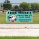 Große fette Food Trucks Werbebanner. Banner ist ideal, um die Community lassen, die weiß, wie sie Ihren Food Truck Event unterstützen kann. Design ist mit einem weißen und schwarzen LKW ausgestattet. Ideal zum Marketing Ihres LKW- oder LKW-Events.