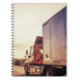 Ein Sonnenuntergangbild eines Traktorschneider-LKWs, der ihn macht, ist Weise niederwerfen eine Landstraße.