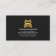 Ein ganz schwarzes Cover weist eine kreative "Transport"-Beschriftung auf, bei der der Buchstabe -O im Wort "Transport" als bewegliche Transportbahn verwendet wird. Auf dieser Umlaufbahn befinden sich auch zwei goldene LKW-Icons neben Ihrem renommierten Namen. Oben auf der Karte befindet sich ein goldenes Sattelschlepper-Logo, das Sie mit den Kontaktdaten in der Nähe der Kartenbasis verwenden können. Oben auf der Rückseite befindet sich das Gold-LKW-Logo, gefolgt von Ihrem prestigeträchtigen Namen, Kontaktdaten und einer Slogan-Beschriftung, um Ihre Dienstleistungen zu veröffentlichen. Eine berufliche Karte für Transportunternehmen.