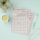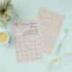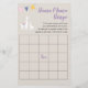 Dieses hübsche Baby-Duschkartenbingo von Llama Mama ist ein großartiger Eisbrecher für Ihre Gäste, um Spaß zu haben und miteinander zu konkurrieren, um zu sehen, wer die Geschenke der zukünftigen Mutter erraten kann. Das Design besteht aus einem Mama- und einem Baby-Lama sowie lila und schwarzem Text auf einem bräunlichen Hintergrund.