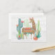 Eine weiche Aquarellfarbe mit einem unter Kakteen stehenden Lama. Künstlerin: Mary Urban