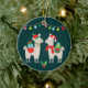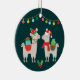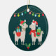 In dieser runden Keramik werden Weihnachtsschmuck mit roten Schals und roten Hut und Geschenke auf dem Rücken getragen.
