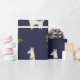 Weiße Lamas und grüne Kakteen auf einem Hintergrund von Marineblau oder tief lila. Ideal für decoupage Kunstwerke, Papierhandwerk oder Geschenkverpackungen. Ideal für decoupage Kunstwerke, Papierhandwerk oder Geschenkverpackungen.