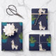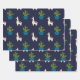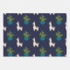 Weiße Lamas und grüne Kakteen auf einem Hintergrund von Marineblau oder tief lila. Ideal für decoupage Kunstwerke, Papierhandwerk oder Geschenkverpackungen.