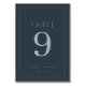 Dieses elegante Tischkarten-Design strahlt eine anspruchsvolle und moderne Atmosphäre aus, perfekt für eine stilvolle Hochzeitsfeier. Das minimalistische Layout verfügt über eine saubere Typografie mit einer großen, prominenten Zahl in der Mitte, umgeben von subtilen Textdetails, die seinem raffinierten Aussehen hinzufügen. Vor einem tiefen Navy-Hintergrund erzeugen die sanften Grautöne eine harmonische Farbpalette, die zeitlose Eleganz vermittelt. Ideal, um Ihrem besonderen Tag einen Hauch von unterschätztem Luxus zu verleihen, ergänzt dieses Design mühelos jedes zeitgenössische Hochzeitsthema und ermöglicht gleichzeitig eine Personalisierung, um Ihrem einzigartigen Ereignis gerecht zu werden.