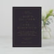 Diese elegante Hochzeitseinladung verfügt über ein anspruchsvolles Design mit einem reichen, dunklen Hintergrund und goldenen Akzenten, die zeitlose Eleganz ausstrahlen. Die Typografie ist klassisch und raffiniert und trägt zur formellen und dennoch warmen Atmosphäre des Anlasses bei. Perfekt für Paare, die einen unterschätzten Luxus suchen, gibt diese Einladung den Ton für eine unvergessliche Feier an. Mit anpassbaren Textbereichen können Sie jedes Detail personalisieren und gleichzeitig die elegante Ästhetik beibehalten.