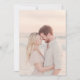 This wedding invitation features a soft, romantic photo design with a warm color palette that evokes the serene beauty of a beach sunset. The composition captures an intimate moment between two people, creating a tender and loving mood perfect for celebrating your special day. With its elegant simplicity, this invitation is ideal for couples who want to convey warmth and affection in their nuptial announcements. Customize it effortlessly to reflect your unique story while maintaining its timeless charm.