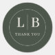 Dieses elegante Hochzeitsaufkleber-Design verfügt über einen minimalistischen und anspruchsvollen Stil, der perfekt ist, um Dankbarkeit bei besonderen Anlässen auszudrücken. Das kreisförmige Motiv mit sauberen Linien und klassischer Typografie schafft ein zurückhaltendes, aber raffiniertes Aussehen, während die gedämpfte grüne Farbpalette einen Hauch zeitloser Eleganz hinzufügt. Ideal für das Hinzufügen einer persönlichen Dankesnachricht zu Ihren Hochzeitsgeschenken oder Korrespondenzpapieren, strahlt dieses Design Wärme und Wertschätzung in seiner einfachen, aber bedeutungsvollen Präsentation aus.