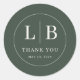 This elegant design features a minimalist and sophisticated style, perfect for wedding thank-you stickers. The circular motif with clean lines and simple typography exudes a timeless charm, while the muted green color palette adds a touch of understated elegance. Ideal for expressing gratitude after a special event, this design conveys warmth and appreciation in its refined presentation. Its customizable nature allows you to personalize it further, making it a versatile addition to your wedding stationery collection.