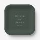 This elegant design features a sophisticated and timeless style, perfect for a wedding celebration. The dark green palette exudes elegance and refinement, complemented by the clean, modern typography that adds a touch of sophistication. Ideal for creating personalized wedding plates, this design captures an air of understated luxury and grace, making it suitable for a chic and memorable event. Its simple yet stylish presentation ensures it will seamlessly fit into any wedding decor theme.