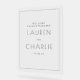 Dieses elegante Hochzeitsschild verfügt über ein minimalistisches und modernes Design, perfekt, um eine unterschätzte, aber dennoch anspruchsvolle Atmosphäre auf Ihrem besonderen Ereignis zu schaffen. Die saubere Typografie ist einfach und raffiniert und sorgt dafür, dass der Fokus auf der herzlichen Botschaft bleibt, die es vermittelt. Vor einem weichen, unscharfen Hintergrund mit natürlichen Farbtönen strahlt dieses Schild eine ruhige und romantische Stimmung aus, ideal, um einen bedeutenden Moment in Ihrer Feier zu markieren. Sein vielseitiger Stil macht es sowohl für Hochzeiten im Innen- als auch im Außenbereich geeignet und verleiht jeder Dekoration einen Hauch von Klasse.