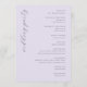 This elegant wedding program features a soft, pastel lavender background that exudes sophistication and romance. The design is minimalist with clean lines and an understated yet sophisticated typography style, creating a timeless and classic look perfect for a memorable celebration. Ideal for couples seeking a refined and intimate atmosphere, this program captures the essence of love and unity, making it a beautiful addition to any special occasion. Its simple layout allows for easy customization while maintaining its graceful charm.