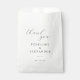 This elegant wedding favor bag design exudes a sophisticated and timeless charm, perfect for celebrating a special occasion. The minimalist style features graceful cursive typography paired with clean, modern sans-serif text, creating an inviting and heartfelt message. Set against a pristine white background, the color palette is simple yet refined, allowing the focus to remain on the sentiment of gratitude. Ideal for adding a touch of class to your wedding favors, this design captures a mood of understated elegance and appreciation, making it a memorable keepsake for guests.