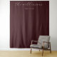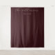 This elegant wedding backdrop features a sophisticated maroon color palette, creating an understated yet luxurious ambiance. The design is centered around delicate cursive typography that adds a touch of timeless romance and refinement to the overall look. Perfect for a formal or classic wedding theme, this backdrop exudes a sense of grace and poise, making it ideal for capturing memorable moments on your special day. Its simple yet stylish presentation allows it to seamlessly blend with various decor elements, ensuring a cohesive and polished event aesthetic.
