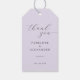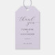 This elegant wedding favor tag features a soft lavender background with sophisticated black script typography, creating an air of timeless romance. The minimalist design focuses on the heartfelt message and names, making it perfect for expressing gratitude at your special day. With its clean lines and understated charm, this tag exudes a refined and classic mood, ideal for adding a touch of grace to your wedding favors. Its simple yet stylish aesthetic ensures it complements any wedding theme seamlessly.