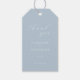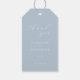 This elegant wedding favor tag features a soft pastel blue background with delicate, cursive typography that exudes sophistication and charm. The minimalist design focuses on the heartfelt message of gratitude, making it perfect for expressing thanks to guests at your special day. With its clean lines and understated elegance, this tag adds a touch of timeless grace to any wedding decor, ensuring your favors are as memorable as the occasion itself.