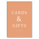 Dieses elegante Tischschild verfügt über ein minimalistisches Design mit einem weichen Pfirsichhintergrund, das eine warme und einladende Atmosphäre schafft. Der Text "CARDS & GIFTS" wird in einer dezenten Serifenschrift prominent dargestellt und durch den kleineren Satz "thank you" ergänzt, was Ihrer besonderen Veranstaltung einen Hauch von Dankbarkeit verleiht. Perfekt für Hochzeiten oder Brautduschen strahlt dieses Schild Raffinesse und Charme aus und wertet jede Tischdekoration auf, während es eine saubere und moderne Ästhetik beibehält. Sein einfacher und dennoch raffinierter Stil sorgt dafür, dass es nahtlos in verschiedene Dekor-Themen passt und es zu einer vielseitigen Ergänzung für Ihre Feier macht.