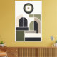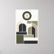 This composition reads like a blueprint for stillness. Arches rise and resolve into stacked planes, while concentric circles anchor the layout with measured gravity, all locked into a strict, almost architectural grid. Every shape appears structural rather than decorative—forms feel placed to support one another, not to compete. The restrained palette of limestone, deep charcoal, muted olive, and warm gray reinforces the sense of weight, material, and permanence, echoing stone, shadow, and patinated surfaces. Negative space is treated as an active element, creating pauses that give the geometry room to assert its clarity. Rendered in a flat vector style, the work embodies modernist discipline with a contemporary calm, designed to reward slow looking rather than demand attention.