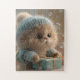 Bring joy and charm to playtime with this oversized puzzle featuring a cozy, photorealistic kitten dressed in a knitted blue hat and sweater. With its large, expressive eyes and soft fur, the kitten holds a teal gift box wrapped in a golden ribbon, surrounded by floating soap bubbles that add a magical touch. The warm, softly blurred background enhances the festive feel, making this puzzle a perfect gift for kids, families, or anyone who loves adorable animal art. Each piece is large and easy to handle, ideal for little hands or relaxed, cozy afternoons.
