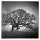 Ein dramatisches Schwarz-Weiß-Foto eines beeindruckenden Eichenbaums.