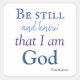 Ein hübscher weißer Aufkleber, dieses Design Features "Sei still und weiß, dass ich Gott bin" Psalm 46:10. Diese Schrift ist in einem schönen, blauen und lila Text verfasst. Ideal, um Ihren Glauben überall zu vertreten, wo Sie hingehen.