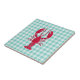 Vergnügliche dekorative Kacheln, die mit allen Arten von Küsten- und Sommerdekorationen zu tun haben! Die rote Hummer-Silhouette auf blauem Gingham-Hintergrund