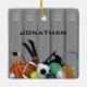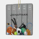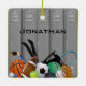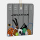 Locker Room Design Ornament, mit verschiedenen Sportgeräten vor einem Set von Schließfächern. Alle Texte individuell anpassbar, vorne und hinten!