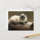 Lächeln Sie, wenn Sie ihnen eine Überraschungsnote auf dieser bezaubernden Kätzchen Postkarte geben! "Log Lounger" ist ein herzzerwärmendes Gemälde, das die Essenz eines faulen Nachmittags in der Natur einfängt. Im Zentrum der Leinwand befindet sich eine junge siamesische Katze, die bequem auf einem dicken Holzblock Erholungen trägt. Seine hellblauen Augen blicken sanft auf Sie, während das weiche, weiße und braune Fell einen sanften Kontrast zur Struktur des Holzs schafft. Die charmante Kätzin ist ganz einfach und inhaltlich perfekt zum Entspannen und Genießen der Schönheit der Natur in einer Umgebung, in der sich die Zeit verlangsamt und die Sorgen abklingen. "Log Lounger" ist eine Feier der einfachen Freuden des Lebens, und eine Erinnerung, langsamer zu werden und die Schönheit zu schätzen, die uns umgibt. Es ist ein Gemälde, das jedem Raum Wärme und Komfort bringt und besonders von Katzenliebhabern und Naturliebhabern beliebt wird.