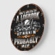 Diese humorvolle Wanduhr zeigt ein witziges Geständnis eines LKW-Fahrers über ihre Logbuchgewohnheiten. Vor einem schwarzen Hintergrund mit orange-braunem Rand zeigt es einen Schädel zwischen zwei flammenbehafteten Halbwagen und dem Text: "ICH FÜLLE NICHT IMMER EIN LOGBOOK AUS, ABER WENN ICH ES TUN KANN, IST ES WAHRSCHEINLICH AUFGEHOBEN". Es ist ein lustiges und leichtes Geschenk für einen Fahrer mit einem rebellischen Streak. Das Designwerkzeug kann auch zum Hinzufügen von benutzerdefinierten Texten verwendet werden, wenn Sie Ihren Namen oder Ihre Firma auf dieser Uhr gewollt haben. Sie können die Farbe des Rahmens an jede gewünschte Farbe anpassen, indem Sie in das Designwerkzeug gehen.