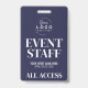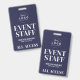 At the bottom, bold serif fonts mix with clean typography to display Event Staff, the event name, date, and “All Access Pass.” You can change all of the text information and colors of this badge to suit your event.