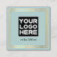 Dusty blauer Hintergrund mit Logotyp, Foto oder QRcode auf der Vorderseite, mit einem goldenen Rahmen aus Imitat, goldenem Quadrat... und zusätzlichen beruflichen Informationen in schwarz gedruckt (Sie können das Design bearbeiten und die Farbe des Textes ändern, um Ihr Logo) Schriftart Stil auf der Rückseite.