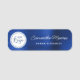 Erstellen Sie Ihr eigenes kleines Firmenlogo dekorative Mitarbeiternamensmarken. Der Hintergrund ist mit einem marineblauen und königsblauen Farbverlauf Imitate gebürstete Metallfolie Digital Art Grafik mit einer weißen Kreisform für Ihr Marine (oder andere Farbe) Logo. Sie können die Farbe der weißen Kreisform ändern. Passen Sie den personalisierten Text je nach Bedarf an oder löschen Sie ihn.