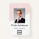 Mit unserem eleganten, individuell anpassbaren ID-Abzeichen mit einem raffinierten Zweifarbenhintergrund in Rosa und Weiß stärken Sie Ihre berufliche Identität. Dieses Abzeichen enthält einen markanten Platz für ein personalisiertes Foto, zeigt den Namen und den Titel Ihres Unternehmens-Logos deutlich an und bietet Platz für zusätzliche Informationen mit Strichcode oder QR-Code auf der Rückseite, um ein poliertes und zusammenhängendes Aussehen zu gewährleisten. Dieses Abzeichen ist ideal für Firmenkonferenzen, Konferenzen und kundenorientierte Aufgaben geeignet und vereint Funktionalität und Stil und ist somit das ideale Zubehör für jede berufliche Umgebung.