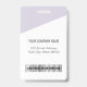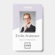 Mit unserem eleganten, individuell anpassbaren ID-Abzeichen mit raffiniertem zweifarbigem Hintergrund in weichem Lavendel und Weiß stärken Sie Ihre berufliche Identität. Dieses Abzeichen enthält einen markanten Platz für ein personalisiertes Foto, zeigt den Namen und den Titel Ihres Unternehmens-Logos deutlich an und bietet Platz für zusätzliche Informationen mit Strichcode oder QR-Code auf der Rückseite, um ein poliertes und zusammenhängendes Aussehen zu gewährleisten. Dieses Abzeichen ist ideal für Firmenkonferenzen, Konferenzen und kundenorientierte Aufgaben geeignet und vereint Funktionalität und Stil und ist somit das ideale Zubehör für jede berufliche Umgebung.