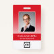 Personalisieren Sie diesen roten, benutzerdefinierten Mitarbeiternamen und das Foto-Abzeichen einfach mit Ihrem Firmenlogo und qr-Code oder Bar-Code. Erhältlich mit verschiedenen Hintergrundfarben und Anbaugeräten. Keine Mindestbestellmenge.