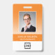 Personalisieren Sie diesen orangefarbenen, benutzerdefinierten Mitarbeiternamen und das Foto-Abzeichen einfach mit Ihrem Firmenlogo und QR-Code oder Bar-Code. Erhältlich mit verschiedenen Hintergrundfarben und Anbaugeräten. Keine Mindestbestellmenge.