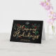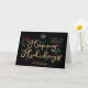 Passen Sie die originelle Business Happy Holidays Grußkarte an, die Imitate mit goldenem Glitzer-Text und handgezeichneten Weihnachtsdekorationselementen auf schwarzem oder anderem Farbhintergrund zeigt. Bitte beachten Sie, dass das Gold und der Glitzer in diesem Design flach gelb gedruckt sind und keine metallische Folie oder Glitzer sind. Ändern Sie das Bild "Ihr Logo hier" mit Ihrem Logo oder entfernen Sie es, wenn Sie gewollt, es ohne Logo zu verwenden. Vergessen Sie nicht, auch die Vorderseite und den Innentext anzupassen. Die schwarze Hintergrundfarbe ist anpassbar und kann an jedes beliebige andere Farbschema angepasst werden. Perfekte Corporate- oder Office Group-Karte mit einem warmen Ambiente für Mitarbeiter, Geschäftspartner und Kunden.