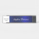 Erstellen Sie Ihre eigene personalisierte Schreibtischmarke. Diese elegante, blaue Schreibtischplatte aus Metallic besticht durch eine schicke, blaue Folie aus Metallic mit Firmenlogo, Namen und Jobtitel in moderner Typografie. Ideal für berufliche Führungskraft.