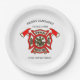 Logo der Feuerwehr Gold und Rotes Abzeichen Pappteller