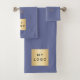 Personalisieren Sie Ihre Firma, Ihr Firmenlogo und einen Text. Eine blaue Hintergrundfarbe. Goldene Buchstaben. Der Text ist mit einem modernen handgeschriebenen Stilskript geschrieben. Die Hintergrundfarbe kann an Ihre Marke angepasst werden.