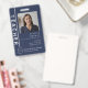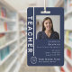 Einfaches, stilvolles Back to School ID Abzeichen, das mit dem ID-Foto, dem Namen, der Position und dem Strichcode Ihres Mitarbeiters personalisiert werden kann. Das stilvolle Design besticht durch eine moderne, minimalistische Gestaltung und ein Blockbanner in Stein grau, das sich von der Masse abhebt.