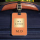 Orangefarbenes Imitat Lederprint als Hintergrund. Personalisieren und fügen Sie Ihr Firmenlogo und Ihre Initialen auf der Vorderseite, Name und Kontaktdaten. (Nichtzutreffendes streichen)
