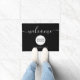 Elegantes personalisiertes Firmenlogo und Namenstor mit Ihrem Firmennamen Set auf schwarzem Hintergrund in einem klassischen, weißen Text mit der Meldung "welcome", das Set in einem eleganten, weißen Schriftzeichen. Personalisieren Sie Ihre Details und passen Sie die Farbe an die Farbe Ihrer Wahl an. Entwickelt von Thisisnotme©