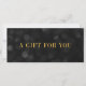 Geschenkgutschein-Karte, dass Sie Ihr Logo mit den Worten "Ein Geschenk für Sie" in den Imitaten goldenen Folie vor einem dunklen Bügel Lichter Muster Hintergrund auf der Vorderseite hinzufügen können. Personalisieren Sie es, indem Sie den Platzhalter-Text und das Platzhalter-Bild durch Ihr eigenes Logo ersetzen. Für weitere Optionen, wie zum Beispiel den Schriftart zu ändern, ist es die Größe und Abstand zwischen den Buchstaben klicken Sie auf die Schaltfläche "Anpassen". *Bitte beachten Sie, dass das Zazzle-Wasserzeichen, das in der Zoomvorschau angezeigt wird, NICHT auf dem gedruckten Endprodukt erscheint. © Rosewood and Citrus